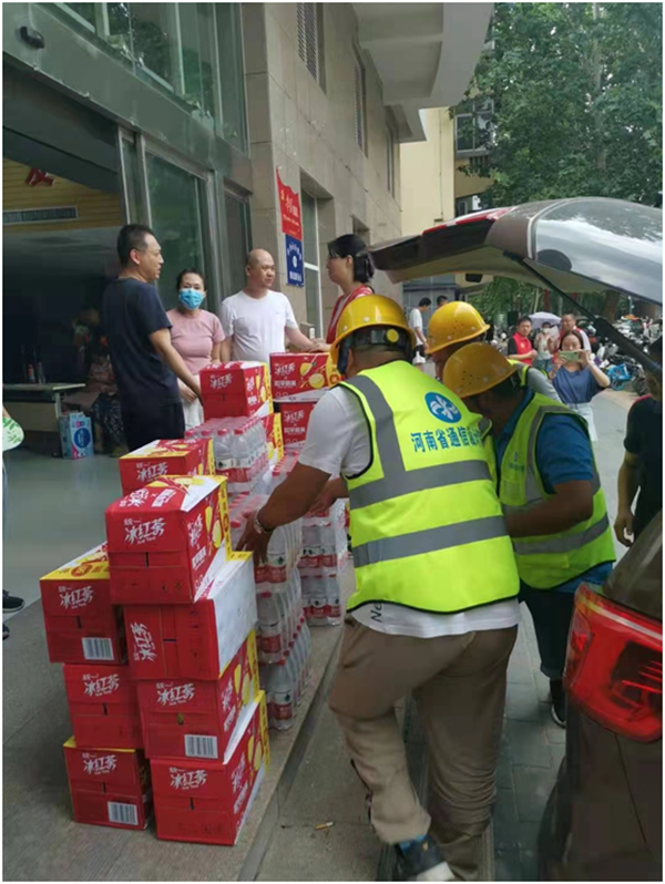 一方有難、八方支援,企地同心、同舟共濟(jì)。7月25日、26日、27日,在鄭州市金水區(qū)委、區(qū)政府的關(guān)心與安排下,經(jīng)八路街道辦事處分3批4次向我公司捐贈(zèng)了瓶裝飲用水、方便面、消毒用品、防暑降溫藥品及小食品等抗洪搶險(xiǎn)救災(zāi)保障物資,為我公司在救災(zāi)搶險(xiǎn)和通信搶修一線的隊(duì)伍送來了關(guān)懷和溫暖。