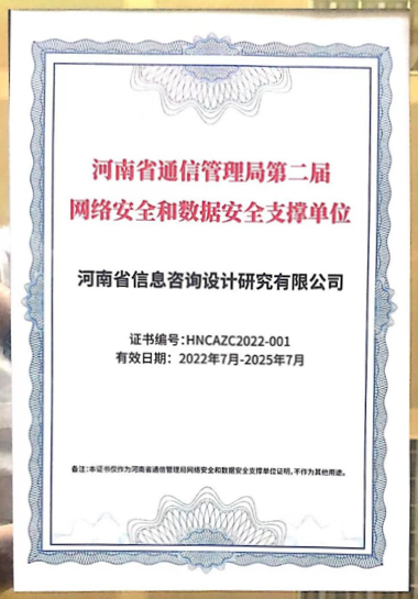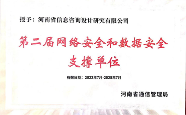 當(dāng)前位置:> 公司動(dòng)態(tài)>我公司榮獲河南省通信管理局第二屆網(wǎng)絡(luò)安全和數(shù)據(jù)安全支撐單位