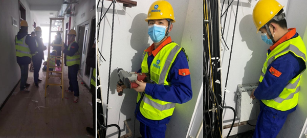 根據(jù)前期現(xiàn)場(chǎng)勘測(cè)的工程量,本次公司投入4個(gè)班組20余人,對(duì)大樓內(nèi)進(jìn)行無(wú)線(xiàn)設(shè)備和天線(xiàn)安裝,及通信線(xiàn)纜的布放。施工大樓內(nèi)存在外電未引入,所有物料無(wú)法使用機(jī)械運(yùn)輸;弱電橋架未交工、樓內(nèi)上下水未通等多種問(wèn)題。為滿(mǎn)足鄭州聯(lián)通公司要求,保障項(xiàng)目工期,施工人員克服重重困難,沒(méi)外電便利用工作頭燈照明,沒(méi)電梯便采用肩挑人扛把所有物料搬運(yùn)至各樓層;項(xiàng)目經(jīng)理杜勝利通過(guò)多次現(xiàn)場(chǎng)協(xié)調(diào)后,解決了施工臨時(shí)用電問(wèn)題;采用線(xiàn)纜套管方法保護(hù)橋架解決走線(xiàn)問(wèn)題;大樓內(nèi)沒(méi)有上下水,施工人員便采取少喝水解決樓內(nèi)無(wú)法入廁問(wèn)題。